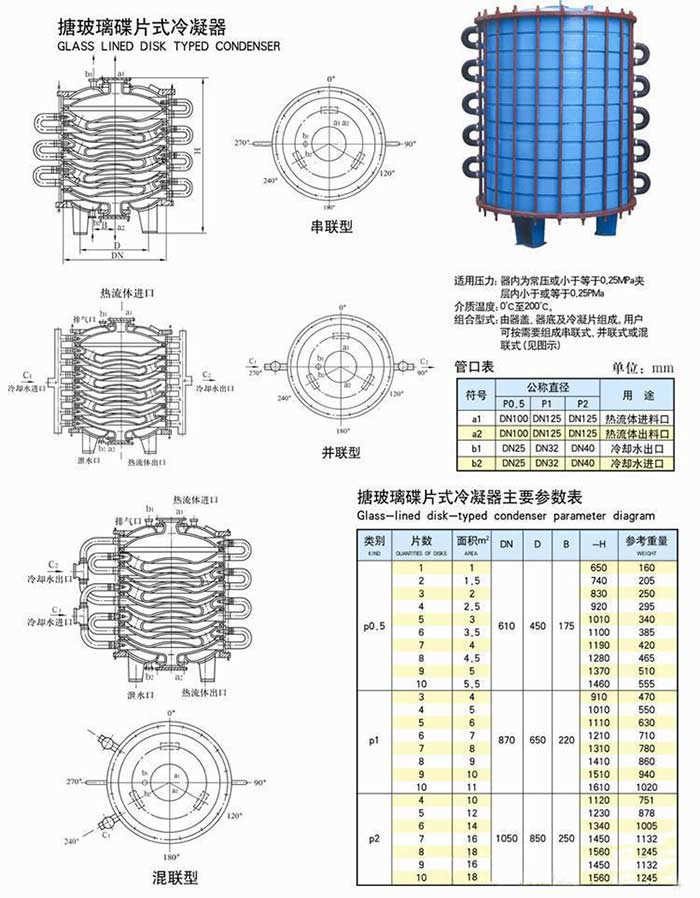 搪玻璃蝶片式冷凝器參數(shù)表
